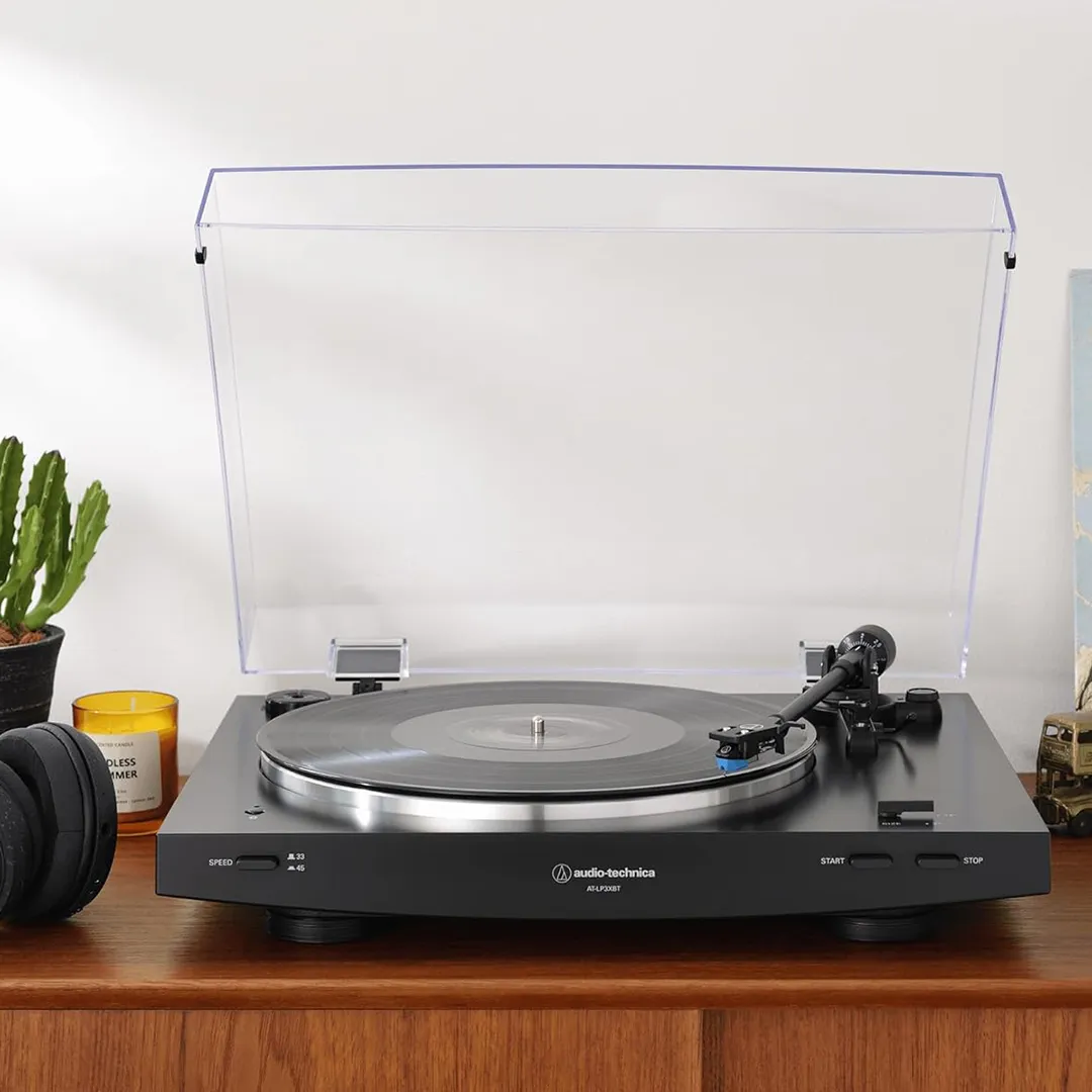 The AT-LP3XBT also offers selectable speed options, with both 33-1/3 RPM and 45 RPM settings, giving you the flexibility to play a wide range of vinyl records in your collection. Additionally, its fully automatic operation allows for easy one-touch start, stop, and tonearm return, making it perfect for beginners or those who prefer a fuss-free listening experience.