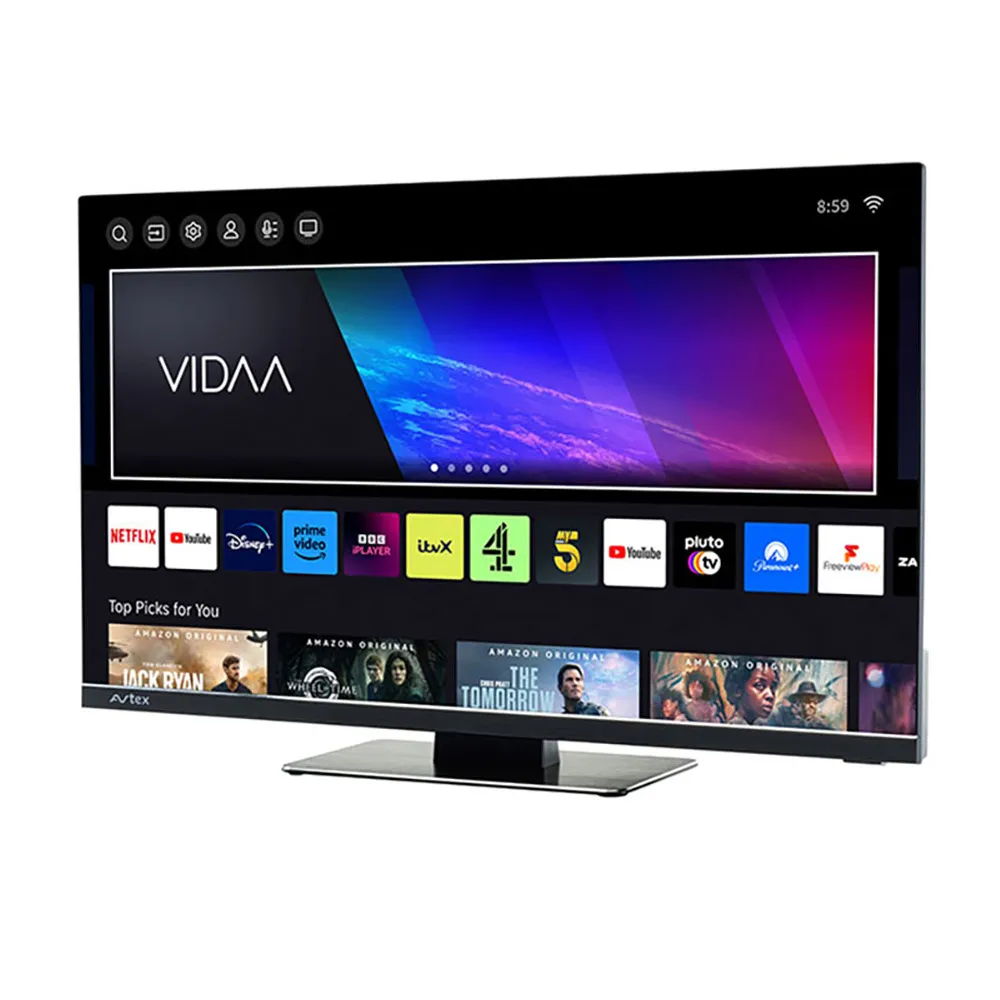 ded 12/24V DC / 240V Dual tuner Smart television, with the latest Avtex | Vidaa mobile Smart platform designed specifically for the caravan and motorhomes with AQT tuning and on-screen battery meter and intelligent power supply. Overflowing with exciting features and content. With internet connection you can discover a whole new world of entertainment from premium streaming services such as Netflix, Amazon Prime, Disney+, YouTube and much more. As well as all the UK catch-up services such as BBC iPlayer, ITVX, All4, My5 with Freeview Play.