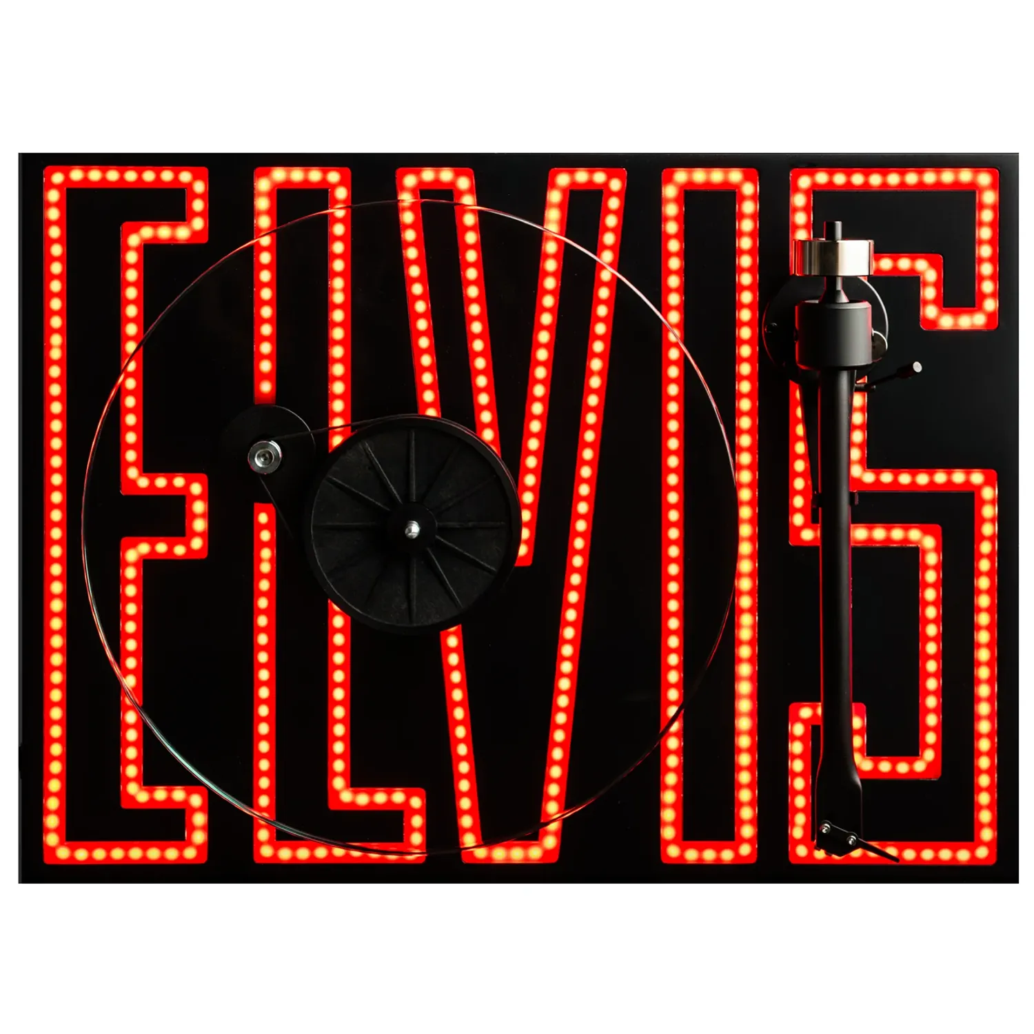 - Dimable LED Elvis logo inside the MDF plinth